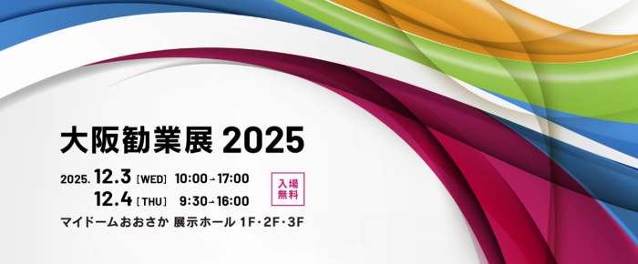 大阪勧業展2025に出展いたします 2025年12月3日~4日、マイドームおおさかで開催される大阪勧業展2025に出展いたします。 日時 12月3日(水) 10:00~17:00 12月4日(木) 9:30~16:00 場所 マイドームおおさか 展示ホール 1~3F 〒540-0029 大阪市中央区本町橋2番5号 弊社ブースは 3F B-09 になります。 みなさまのご来場をお待ちしております。